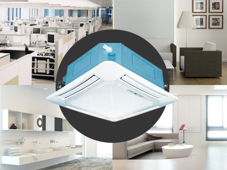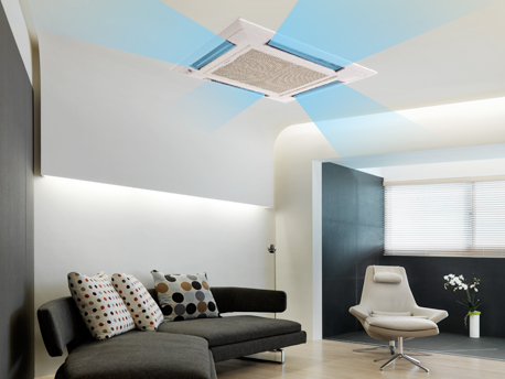 裝于天花板上,為您節省地面空間。造型簡潔,與裝修風格融為一體。四面出風,真正實現沐浴式制冷熱。